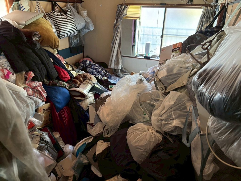 今回の現場は、築40年以上の一軒家。部屋の中には衣類・段ボール・家電・生活ゴミなどが床一面に積み重なり、通路の確保も難しい状況でした。トリクル徳島ではスタッフ4名で作業を実施し、仕分け・搬出・清掃までを1日で完了しました。
