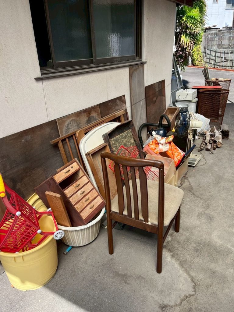 屋外には家具や家電、古い自転車、収納棚などが散乱しており、家の中には傘やストーブ、棚などが多数残された状態でした。スタッフ4名で分別・搬出・清掃までを一日で完了させました。